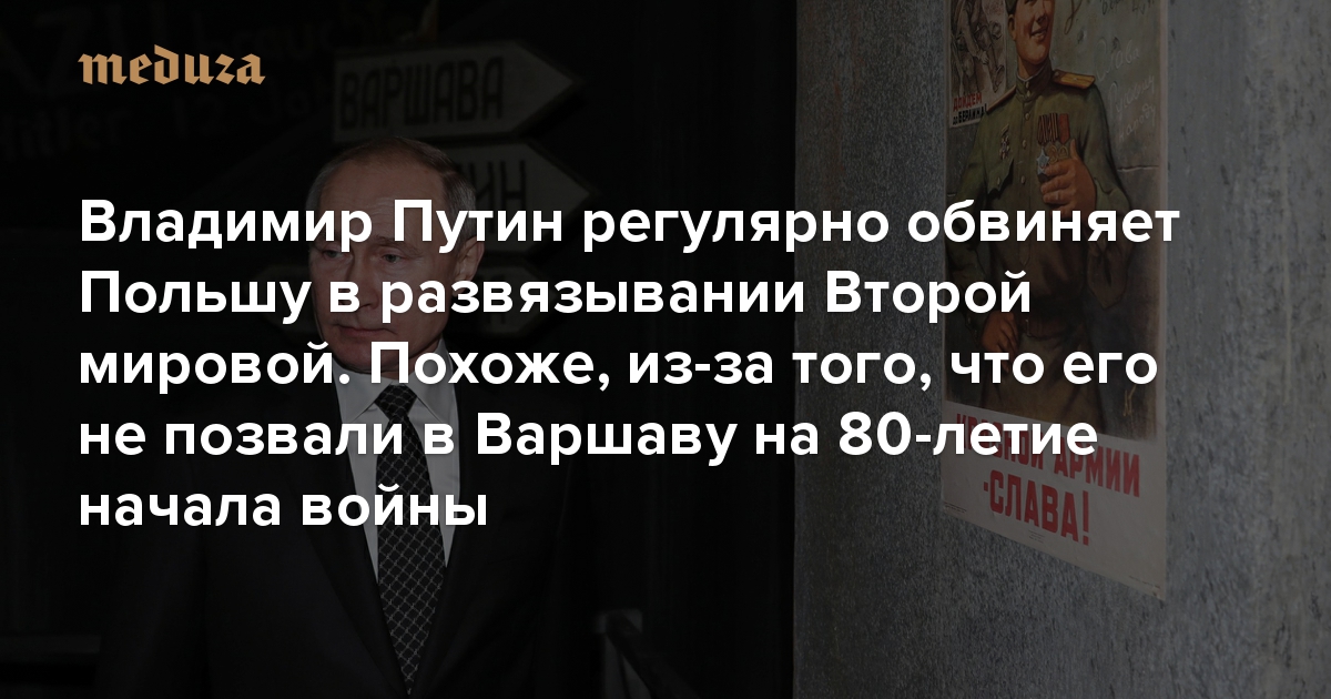 В конце 2019 года Владимир Путин несколько раз резко высказался о роли Польши в начале Второй мировой войны. Президент России даже пообещал, что к 75-летию Победы напишет статью, в которой изложит собственные взгляды на события конца 1930-х. Публично осуждать пакт Молотова — Риббентропа, по которому Германия и СССР поделили Восточную Европу, Путин перестал несколько лет назад — однако сейчас вновь вернулся к этой теме, сфокусировав внимание на Польше. Как выяснила «Медуза», это может быть связано с тем, что в 2019-м российского президента не пригласили в Варшаву на мероприятия, приуроченные к 80-летию начала Второй мировой войны. Люди, снабжающие Путина исторической информацией, давно прибегают к антипольской риторике — на фоне того, как в самой Польше государство также активно использует историческую память в политических целях.