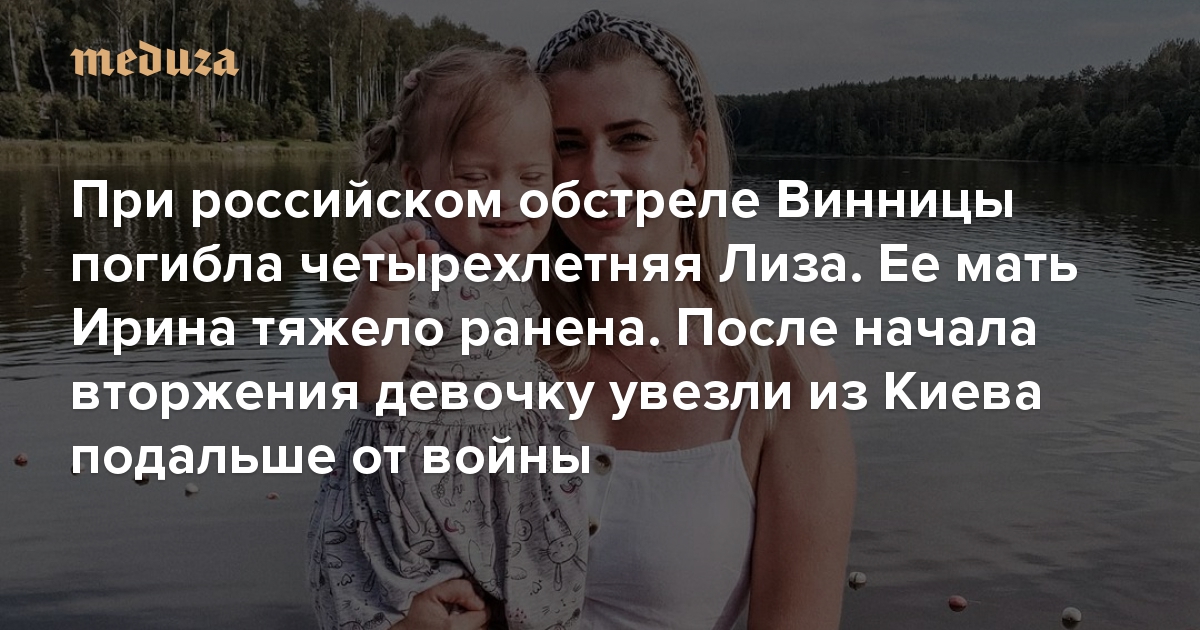 При российском обстреле Винницы погибла четырехлетняя Лиза. Ее мать Ирина тяжело ранена После начала вторжения девочку увезли из Киева подальше от войны. Ирина рассказывала, как это было