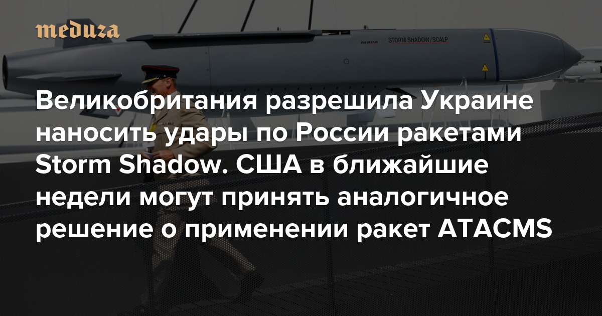 Великобритания разрешила Украине наносить удары по России ракетами Storm Shadow. США в ближайшие недели могут принять аналогичное решение о применении ракет ATACMS