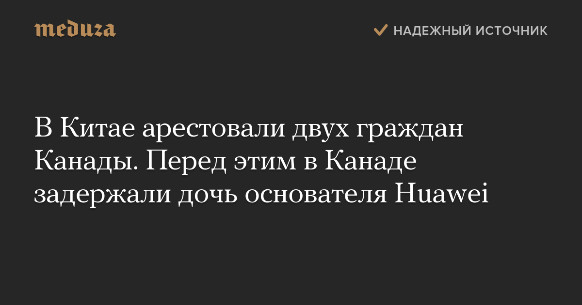 В Китае арестовали двух граждан Канады. Перед этим в Канаде задержали дочь основателя Huawei
