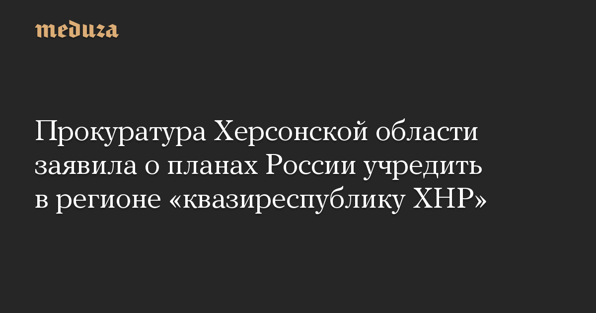Прокуратура Херсонской области заявила о планах России учредить в регионе «квазиреспублику ХНР»