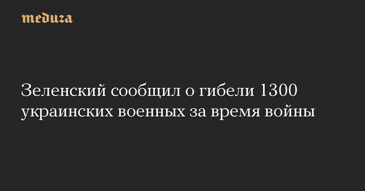 Президент Украины Владимир Зеленский заявил, что за время войны погибли около 1300 украинских военных.