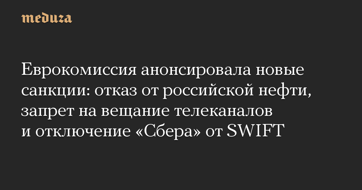 Еврокомиссия анонсировала новые санкции: отказ от российской нефти, запрет на вещание телеканалов и отключение «Сбера» от SWIFT