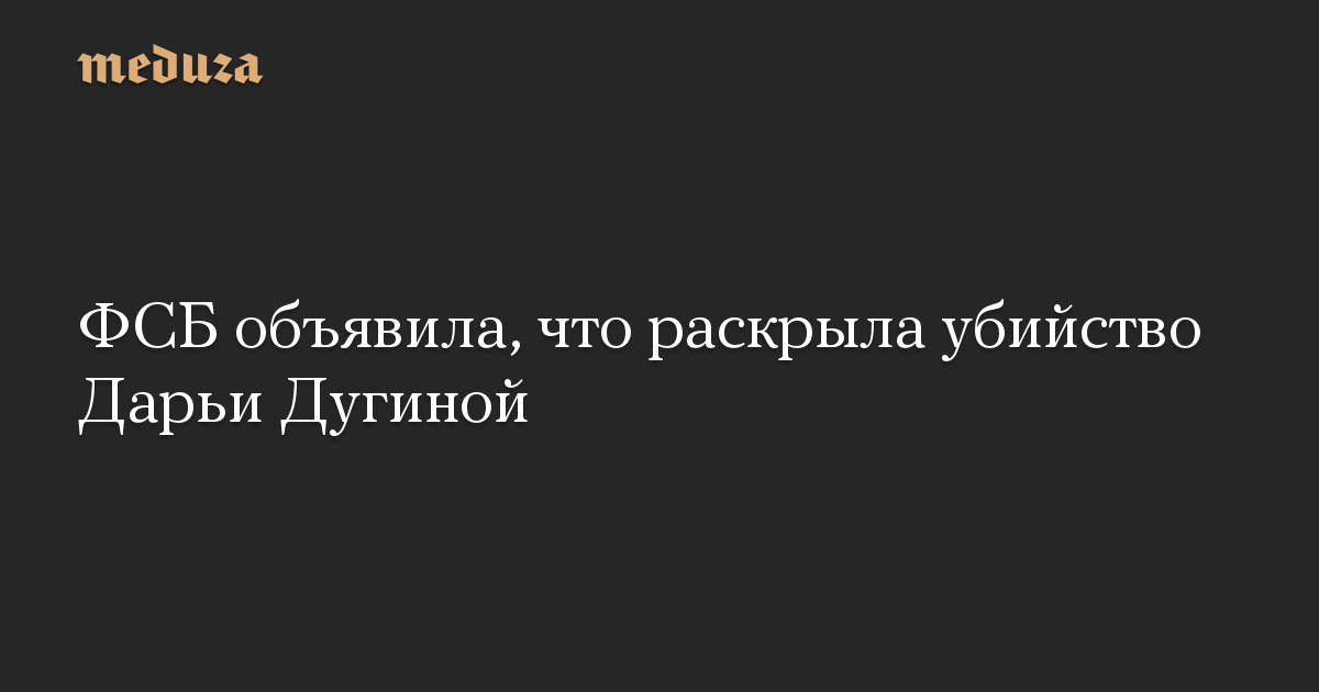ФСБ объявила, что раскрыла убийство Дарьи Дугиной