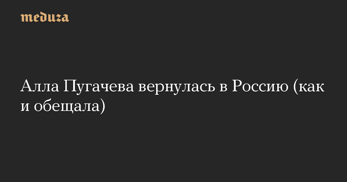 Алла Пугачева, об отъезде которой за границу стало известно в марте, вернулась в Россию, сообщила ТАСС ее помощница Елена Чупракова.