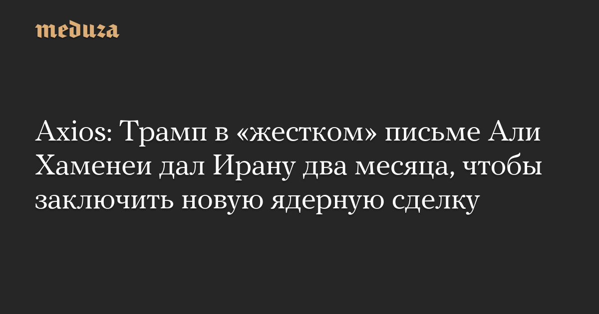Axios: Трамп в «жестком» письме Али Хаменеи дал Ирану два месяца, чтобы заключить новую ядерную сделку