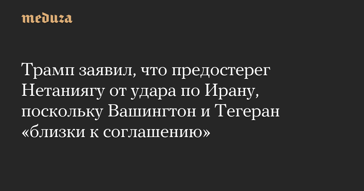Трамп заявил, что предостерег Нетаниягу от удара по Ирану, поскольку Вашингтон и Тегеран «близки к соглашению»