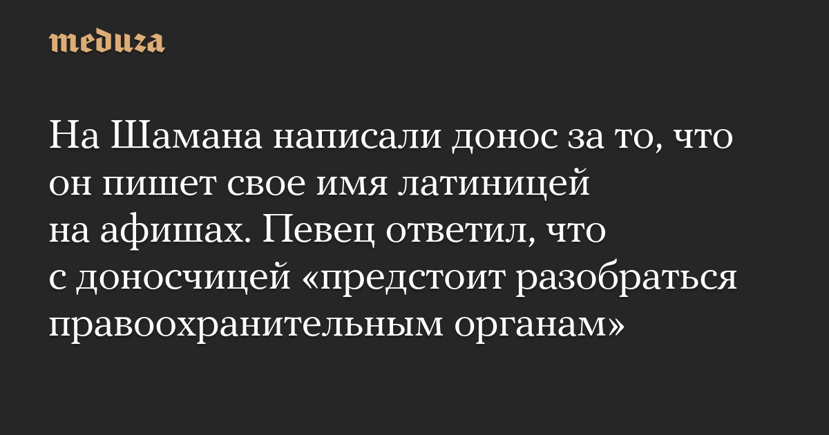 На Шамана написали донос за то, что он пишет свое имя латиницей на афишах. Певец ответил, что с доносчицей «предстоит разобраться правоохранительным органам»